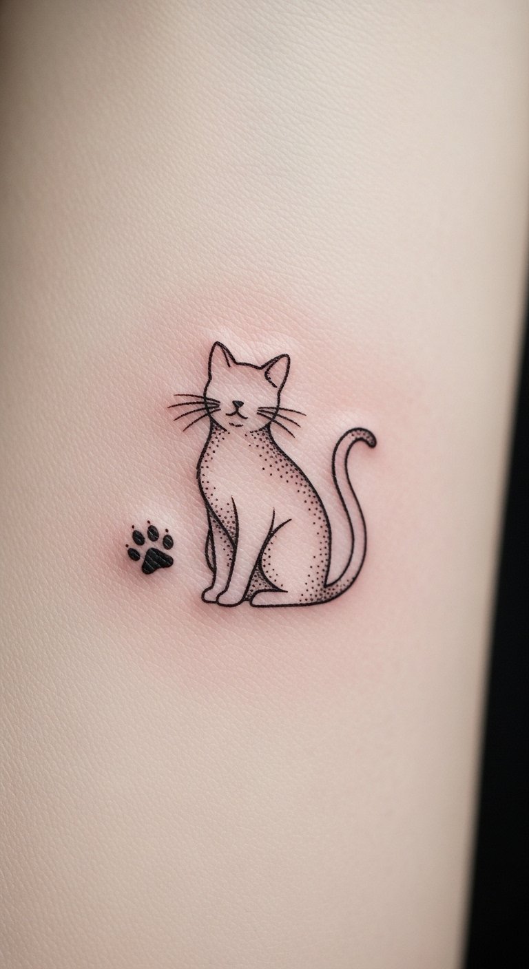Tiny cat tattoos capture the essence of feline charm in the most delightful way. With their minimalist designs, these tiny treasures often feature simple cat paws or elegant silhouettes, embodying the spirit of your favorite furry friend.