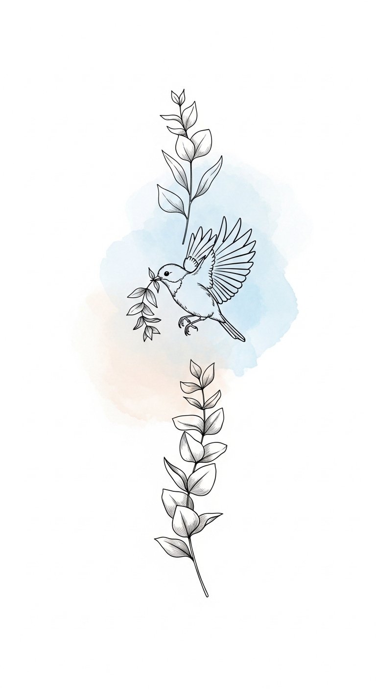 Each intricate detail invites you to celebrate life’s beautiful moments and your love for nature. The design’s symbolism emphasizes liberation and gentle resilience, the watercolor tones evoke calm optimism, and the eucalyptus sprig adds a touch of healing and growth; ideal on a wrist or ankle where movement enhances the feeling of flight.