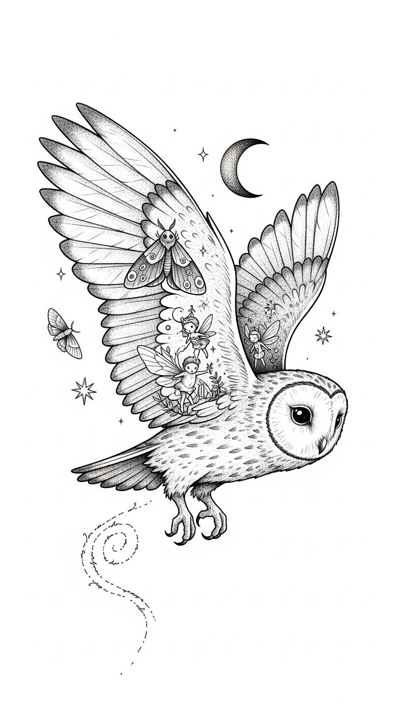 Whimsical fantasy creatures give way to the enchanting allure of sweet owl ink, where wisdom and mystery take flight.