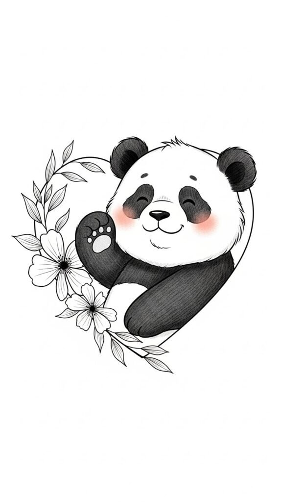 Pandas with floral accents symbolize gentle strength, balance, and a deep connection to nature; the flowers introduce layers of meaning—cherry blossoms for fleeting beauty, peonies for prosperity, or lotus for spiritual growth—while colors convey mood (soft pastels for calm, bold hues for celebration).