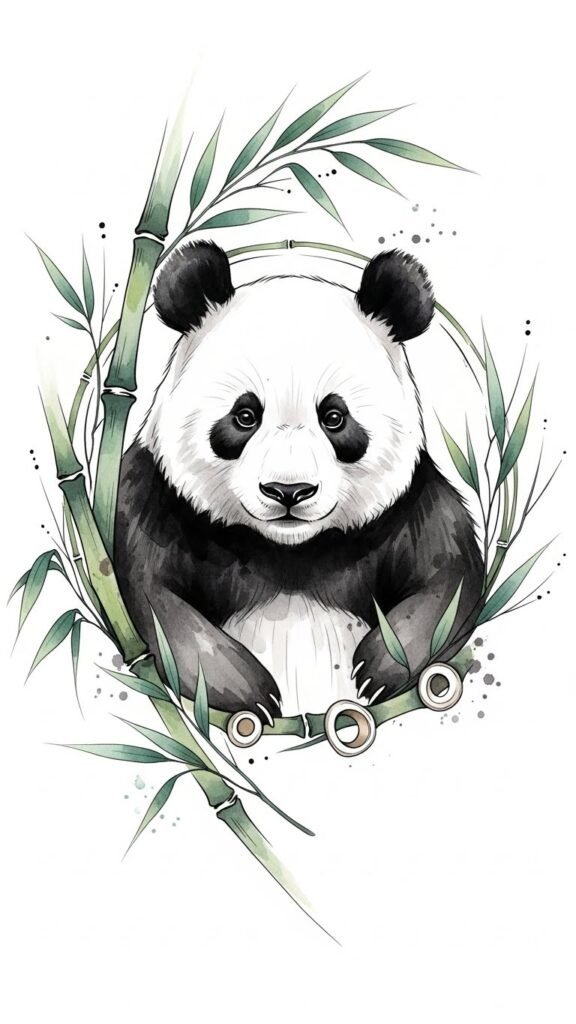 This design captures panda symbolism and bamboo significance, showcasing gentle strength. The art reflects panda culture and aesthetics, emphasizing wildlife connection.