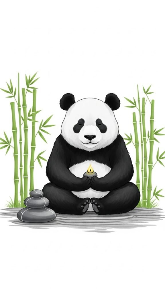 This style embodies minimalist panda symbolism, representing tranquility and strength in its purest form.
