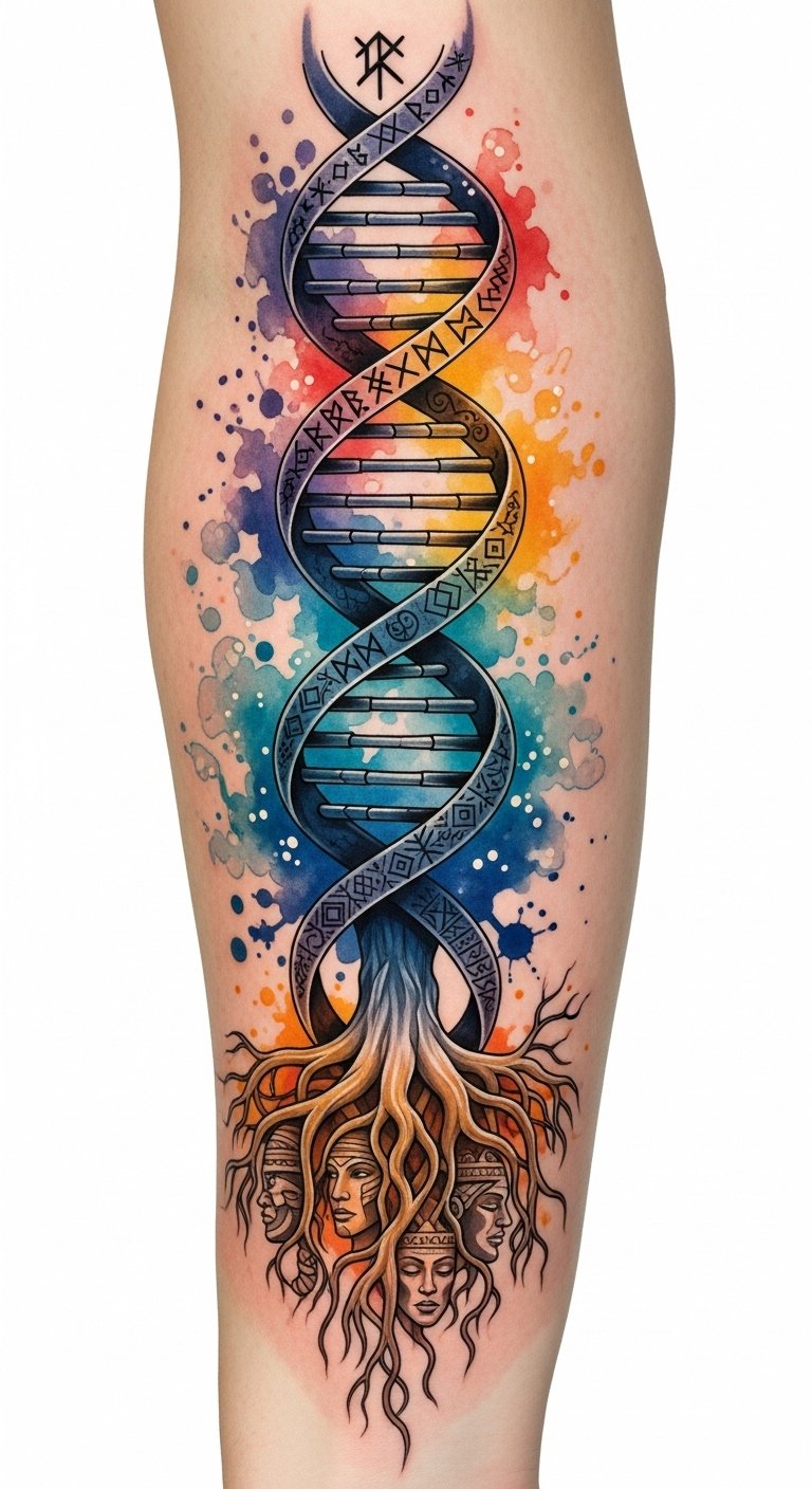 Building on the vibrant expression of watercolor tattoos, the concept of DNA with ancestral roots invites you to explore a deeper connection to your heritage.
