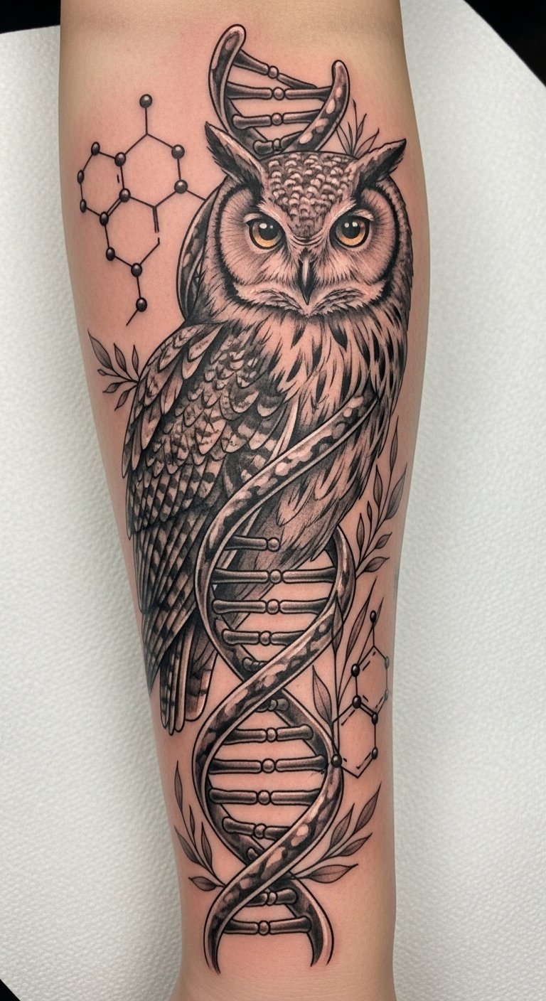 Customizable DNA tattoos symbolize the intimate link between identity and ancestry, evoking pride, curiosity, and belonging; flowing double-helix lines integrate personal motifs or cultural patterns to convey lineage and life stories, while color choices highlight emotional tones—warm hues for vitality, cool tones for introspection.