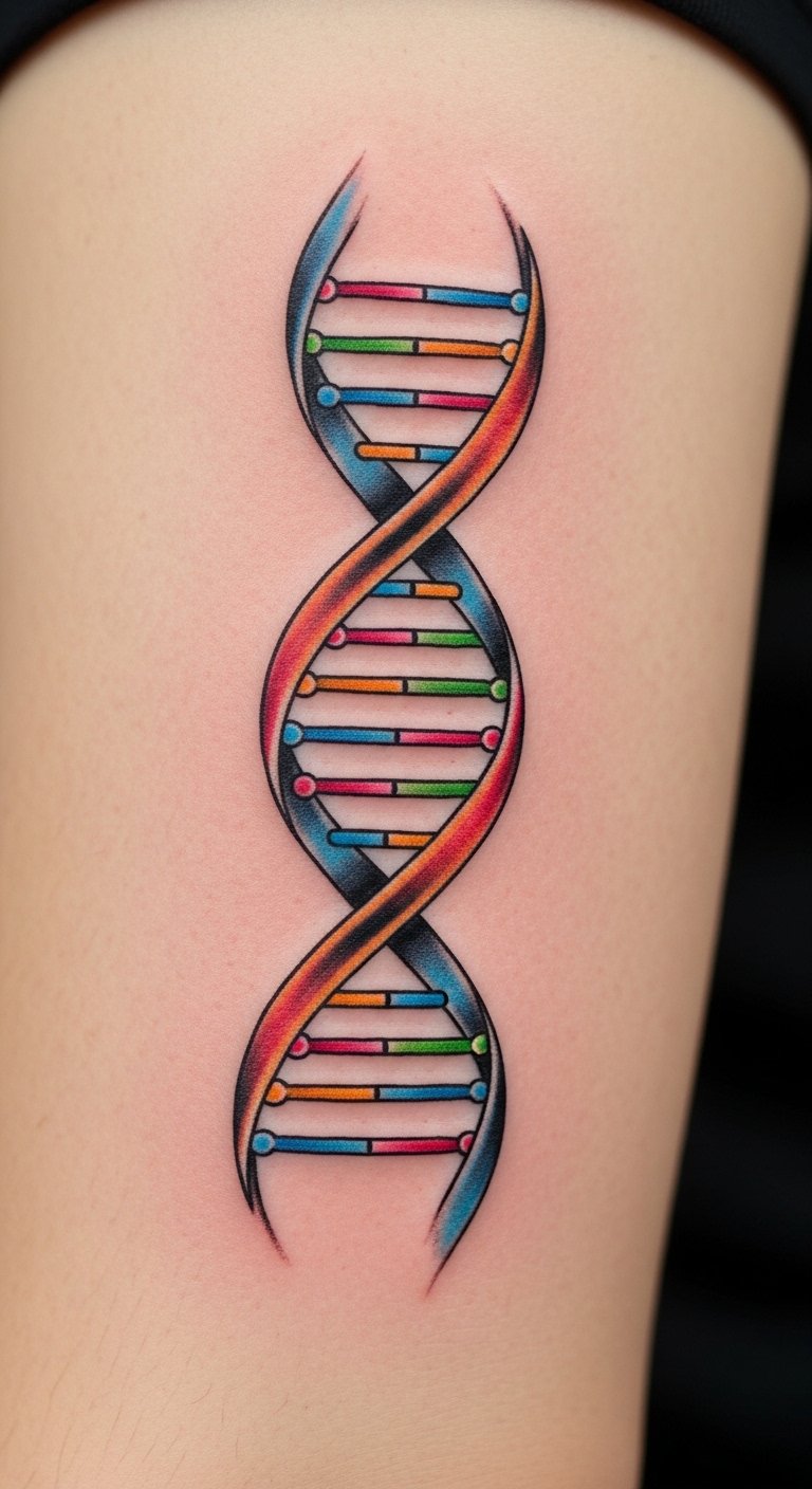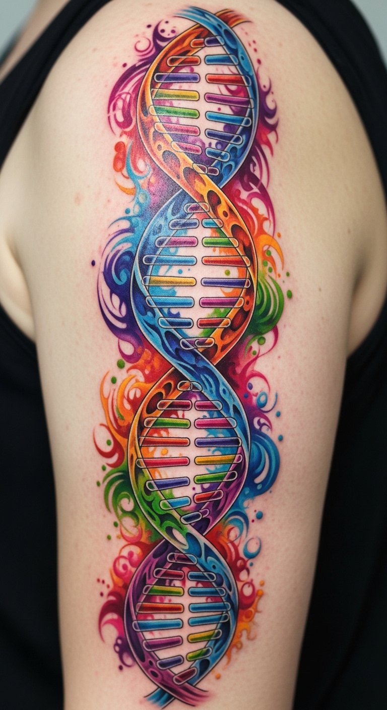 A colorful DNA spiral can transform your skin into a vibrant canvas that celebrates your unique genetic story.