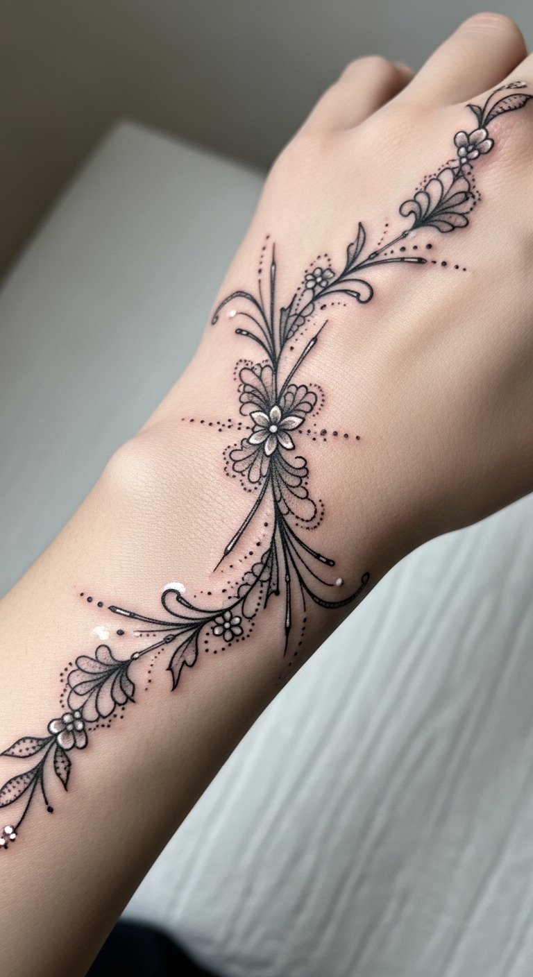 Ideal placement is along the inner wrist wrapping toward the hand so the fine linework reads clearly and follows natural contours, allowing the microdetails to be visible in close interaction and to age gracefully with proper aftercare.