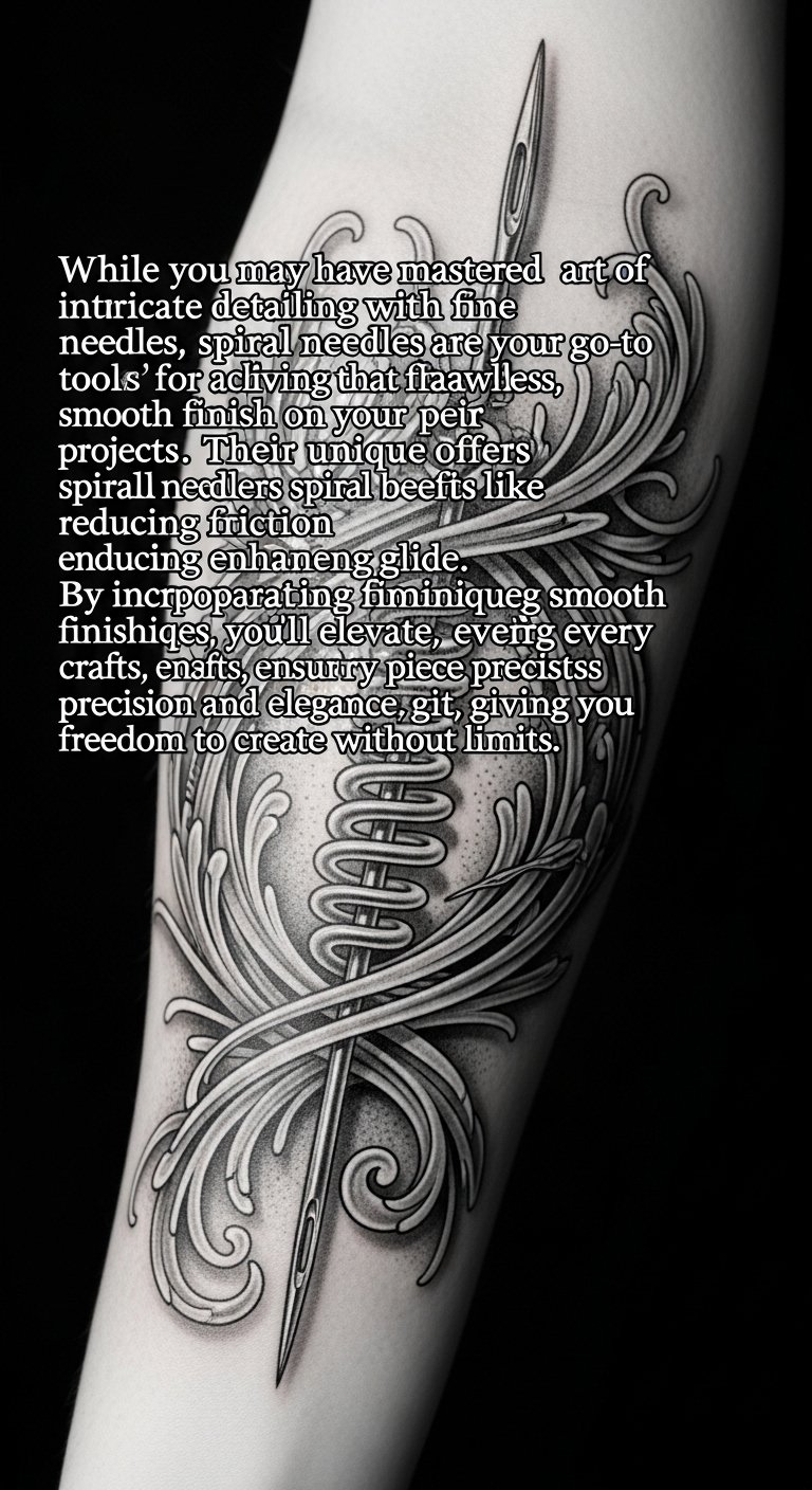 While you may have mastered the art of intricate detailing with fine needles, spiral needles are your go-to tools for achieving that flawless, smooth finish on your projects. Their unique design offers spiral needle benefits like reducing friction and enhancing glide. By incorporating smooth finishing techniques, you’ll elevate your crafts, ensuring every piece radiates precision and elegance, giving you the freedom to create without limits.