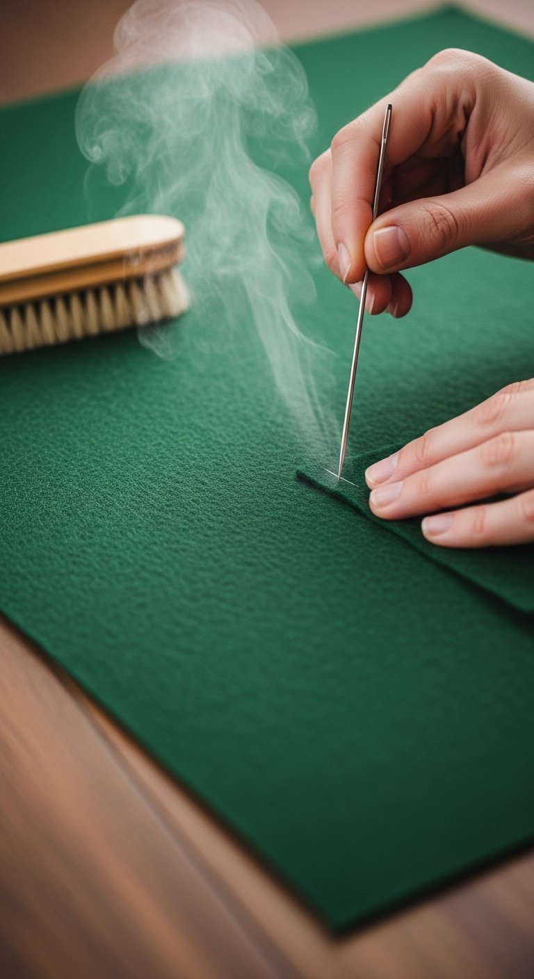 Embrace reverse needle techniques to effortlessly blend fibers, creating a seamless texture. For soft finish tips, focus on gentle pressure and slow, rhythmic motions. You’ll find that the result is a dreamy, fluid fabric that invites touch and inspires creativity.