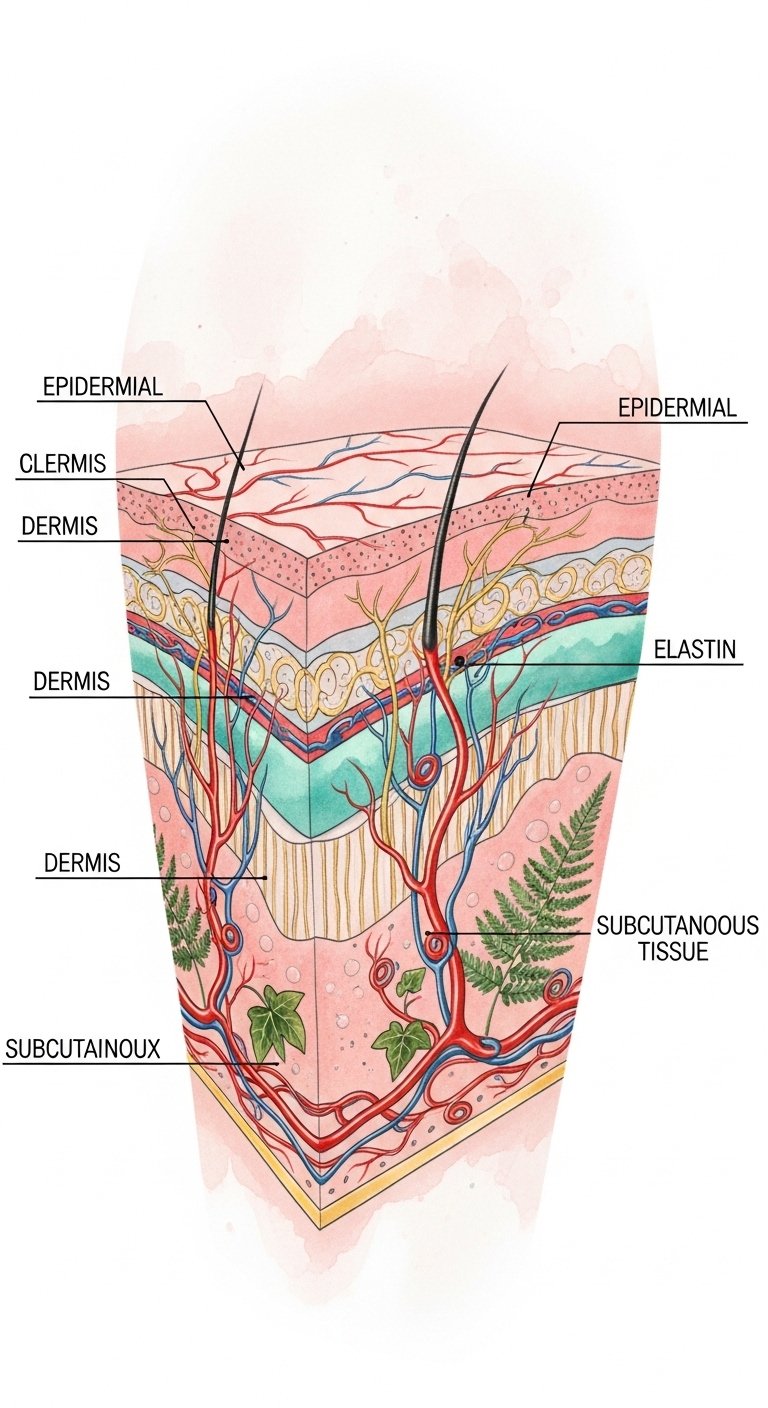 Recognizing how these skin layers interact helps you appreciate the significance of maintaining dermal integrity for lasting beauty. The design symbolizes resilience and care—botanical elements weave into structural fibers to express harmony between nature and physiology; watercolor tones evoke tenderness and healing while gold filigree celebrates inner strength.
