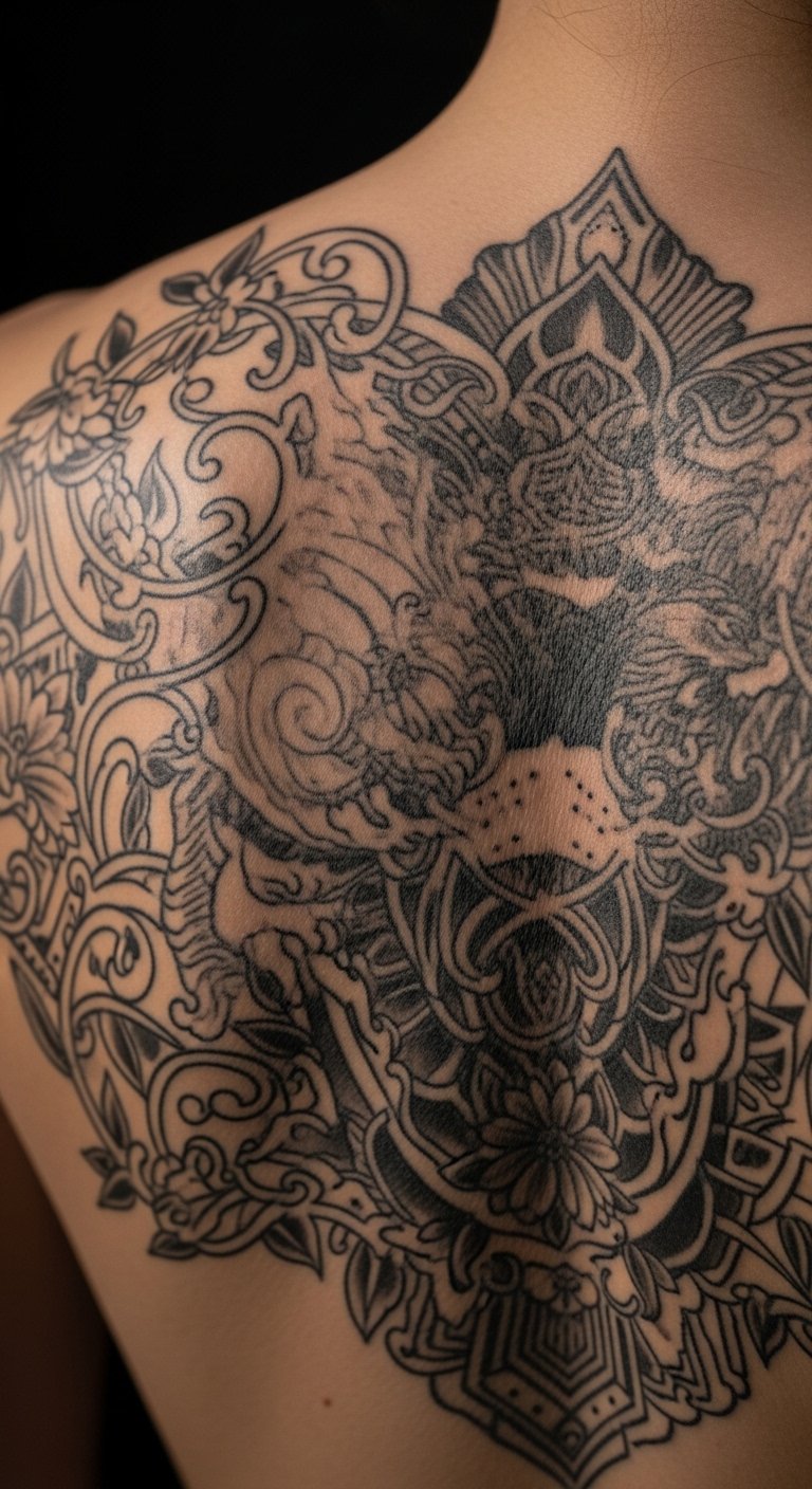 Best placed over the original tattoo on the forearm, shoulder blade, or calf, the feathered edges allow the cover-up to blend naturally with surrounding skin, minimizing abrupt transitions.