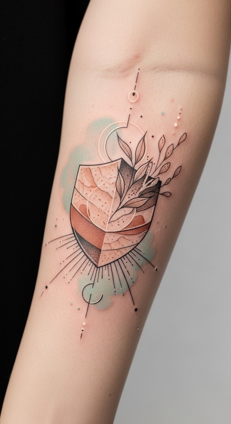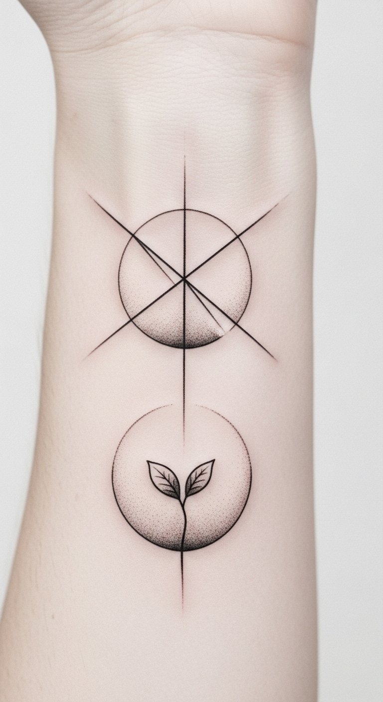 Together the elements evoke calm, confidence, and choice rather than erasure. Ideal placement is the inner forearm where the piece can be viewed easily by the wearer, offering a personal reminder of safe, considered change while remaining discreet and adaptable to surrounding tattoos.