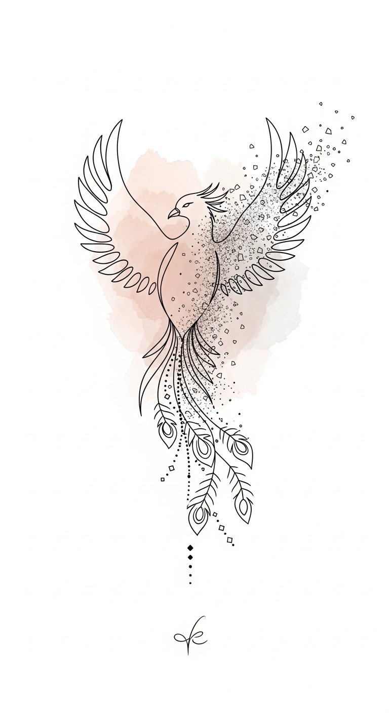 This design concept uses the phoenix as a symbol of transformation and rebirth, with the intentional fading edges representing the process of letting go and the possibility of change.