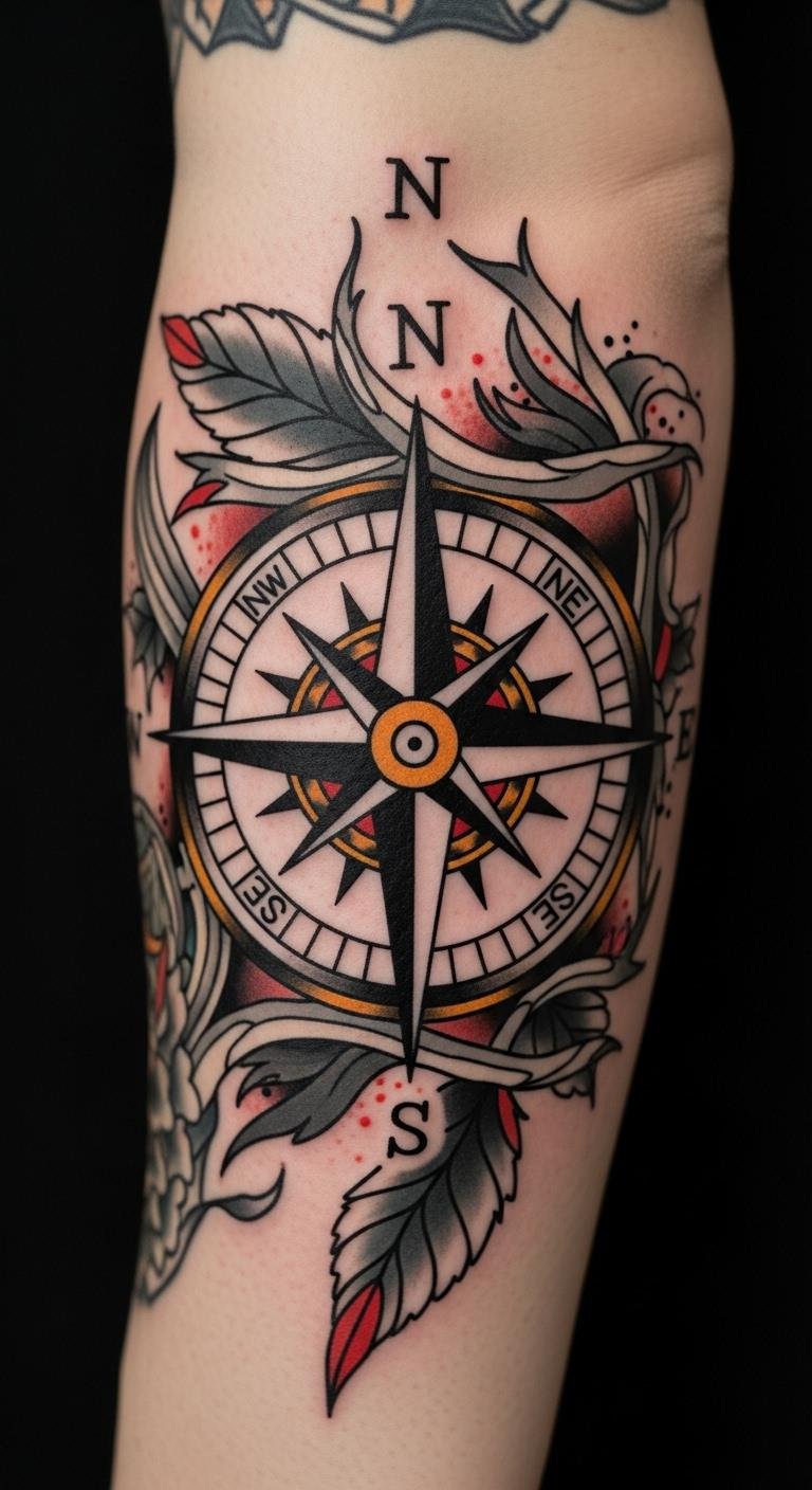 Ideal placement is the outer forearm for visibility and narrative flow, or the upper back/shoulder for a larger, emblematic piece that reads as protection and a lifelong compass.