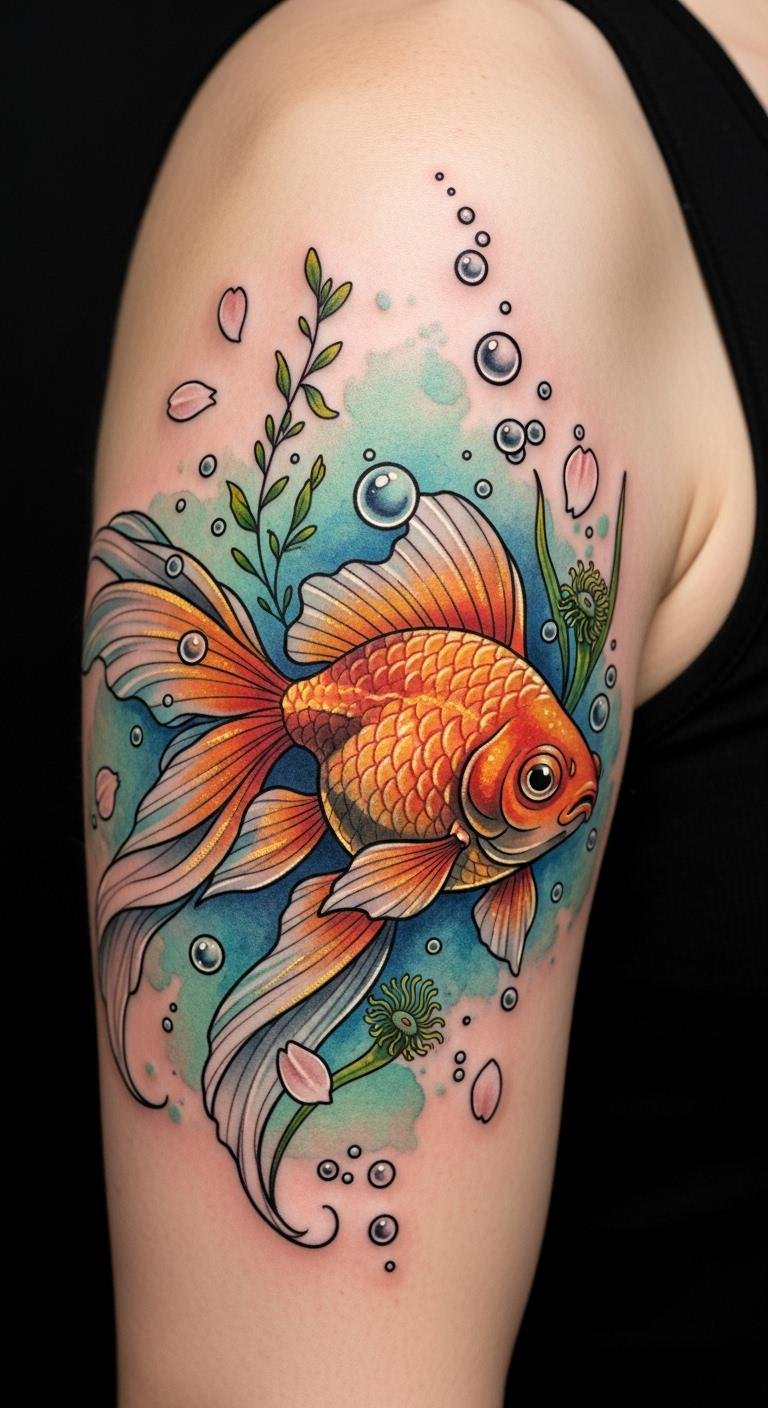 Whimsical Goldfish Tattoo