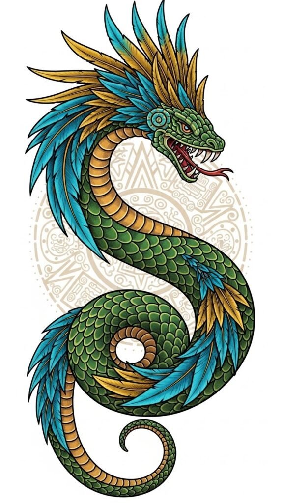 Embodying the essence of knowledge and creativity, the Feathered Serpent stands as a powerful symbol in Aztec art and tattoo design.