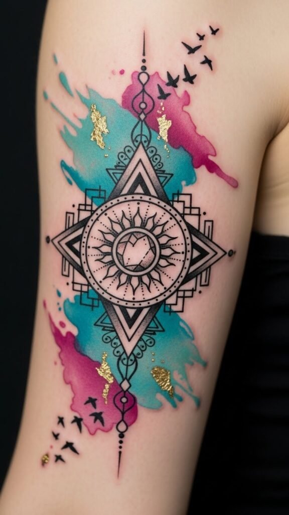 These intricate designs, filled with geometric shapes, create a visual symphony that resonates with your soul. Each line and angle tells a story of freedom, strength, and connection, inviting you to express your individuality through this enchanting art form.