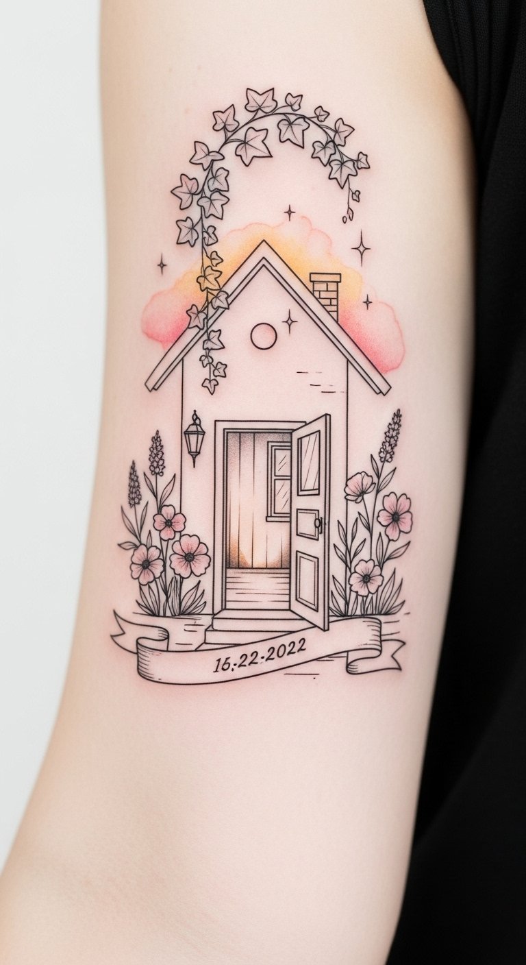 Realistic Cottage Tattoos: Nostalgic Comfort