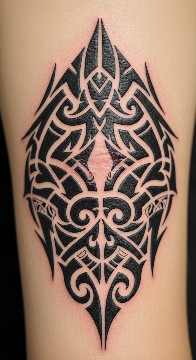 These bold, intricate designs transform your skin into a powerful canvas, celebrating your journey while expressing your individuality and freedom. The design symbolizes resilience and reclamation—bold lines assert strength, interwoven motifs represent community and continuity, and negative space honors the natural contours of the scar; emotionally it fosters empowerment and pride.