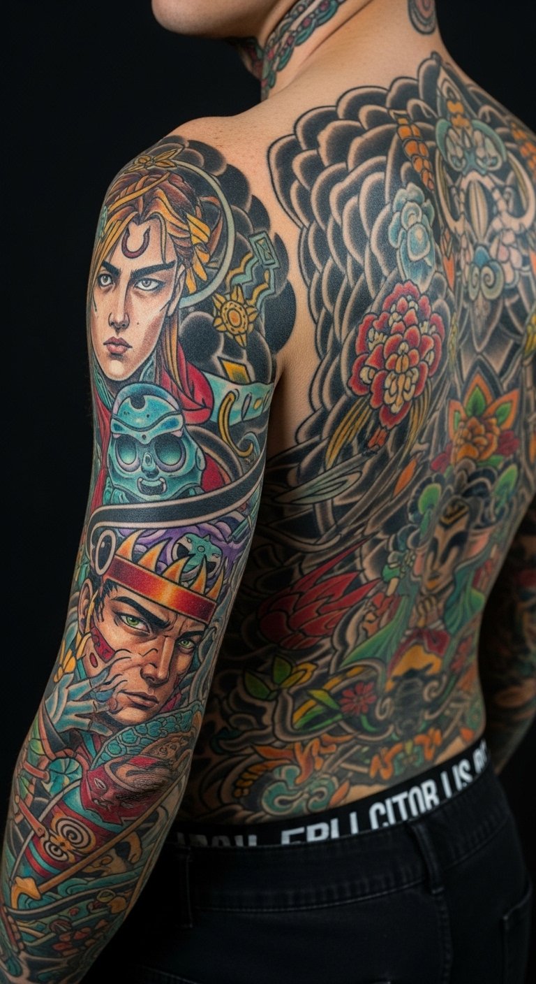 As you explore the intricate world of full sleeves and back pieces, you may notice a striking influence from the vibrant domain of pop art. This evolution breathes life into tattoo trends, merging bold colors and graphic designs with personal expression.