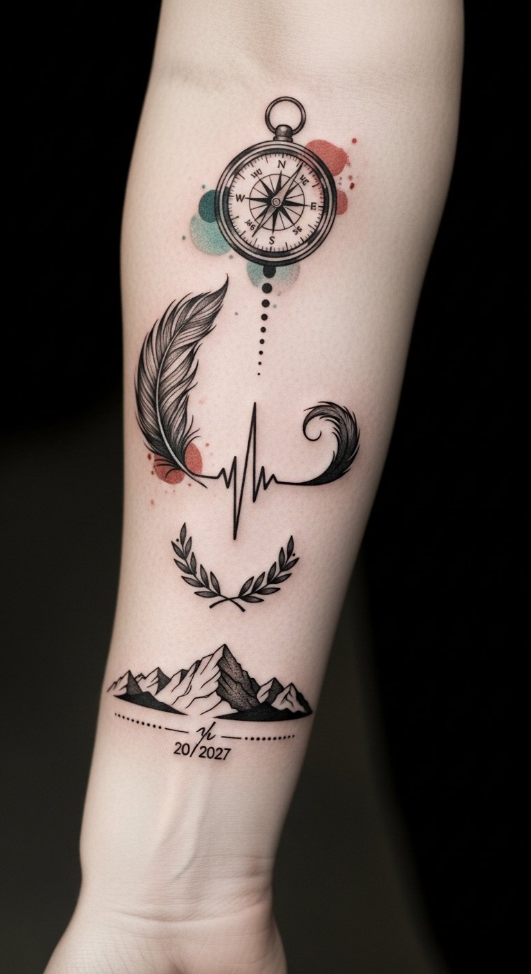 Ideal placement along the inner forearm for visibility and personal reflection, the style balances minimalism with room for future additions.