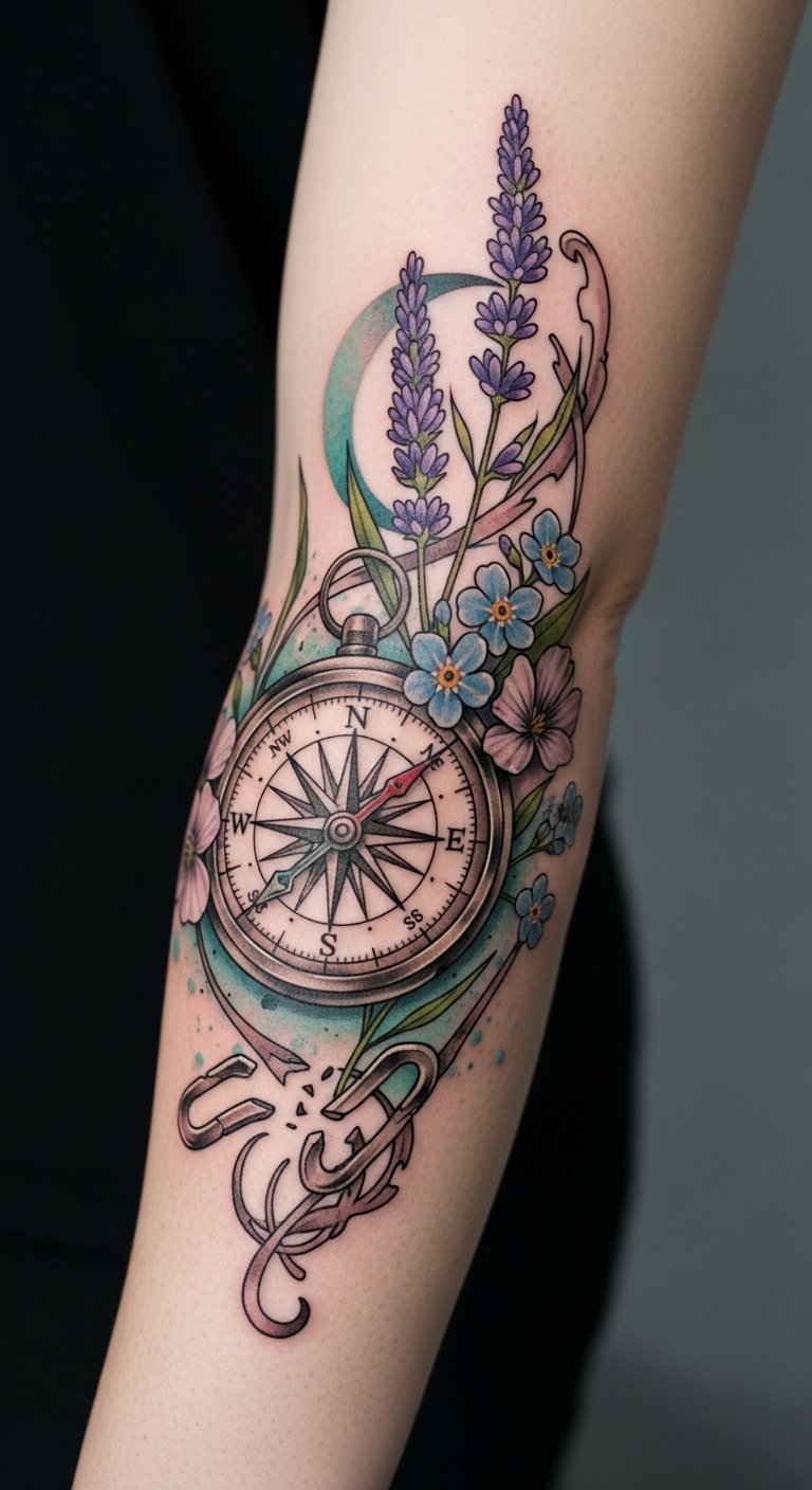 These pieces become more than art; they embody personal significance, serving as reminders of who you’re and the freedom you’ve embraced in your life. The compass represents guidance through change and the broken chain link signifies liberation from past constraints; lavender and forget-me-nots evoke calm, remembrance, and enduring love.