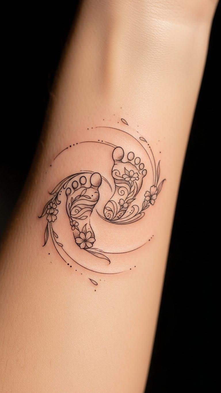 This design blends intimate imagery with subtle decorative elements to evoke tenderness, continuity, and motion; placed on the inner forearm or ribcage it sits where you can both see and feel it, offering quiet reassurance and a visible map of personal progress.