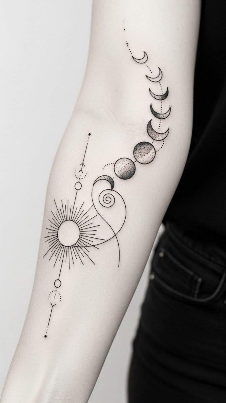 Sun and moon tattoos resonate deeply with those who appreciate the beauty of life’s cycles and transformations. The sun symbolizes energy and strength, while the moon phases reflect introspection and change. Together, they embody the duality of existence, reminding you that every ending sparks a new beginning.