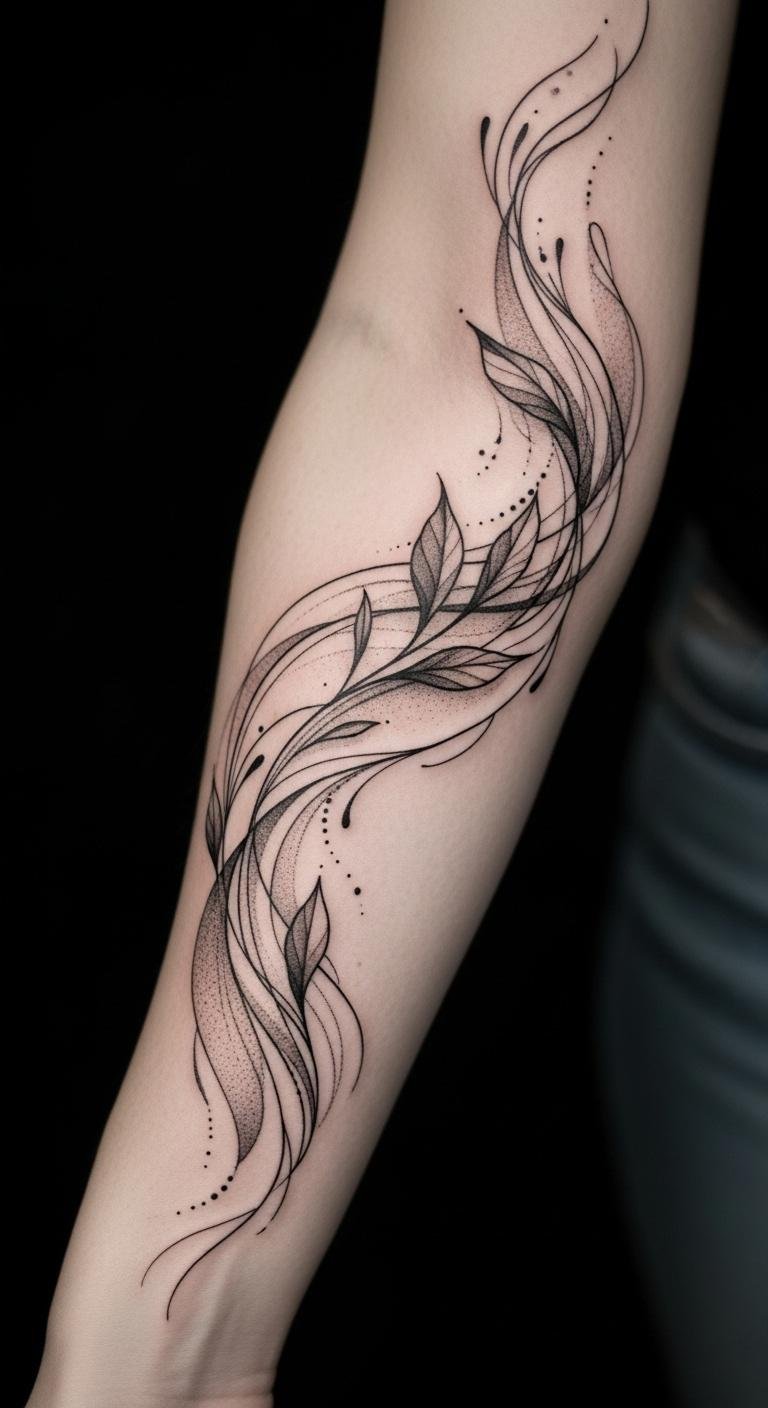 Ideal placement: forearm, shoulder blade, or side rib to allow the flowing lines room to move with the body, creating a harmonious interplay between skin and art.