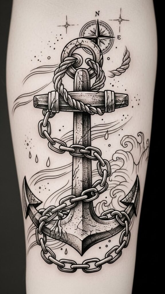 The anchor symbolism reflects your desire for grounding amidst life’s storms, while intricate chain designs symbolize the bonds that keep you connected.