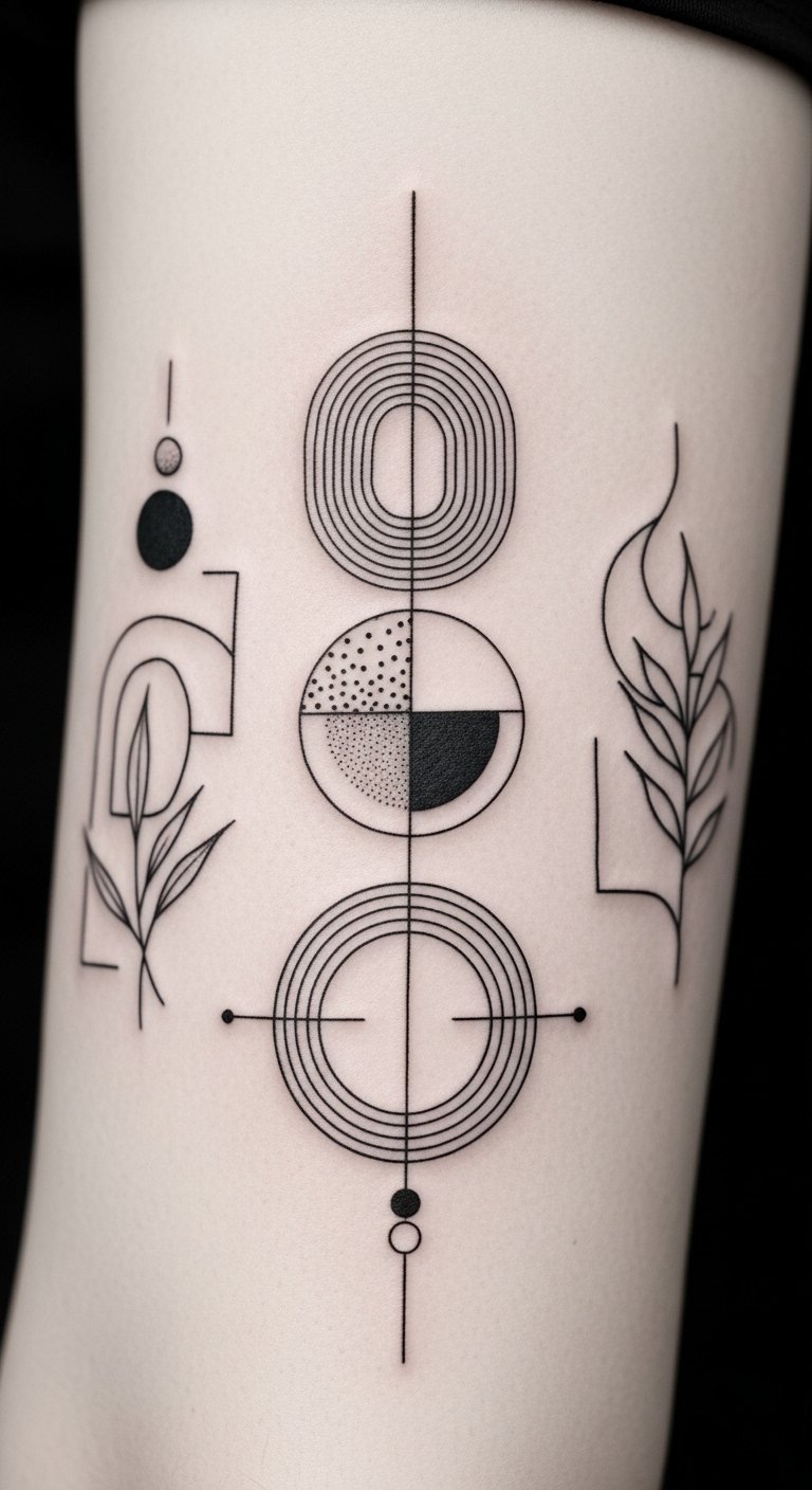 Geometric marvels in tattoo art transform the skin into a canvas of intricate patterns and shapes, enchanting anyone who lays eyes on them. You’ll find yourself captivated by the symmetry of geometric shapes, where every line and angle harmonizes perfectly. These symmetrical patterns not only express individuality but also evoke a sense of freedom, turning your body into a stunning work of art. Symbolism: the interlocking shapes represent balance between order and creativity, precision meeting organic flow; emotion: evokes calm confidence and a quiet sense of liberation; ideal placement: forearm wrap or upper back centered between shoulder blades to showcase symmetry and allow the pattern to flow with body contours.
