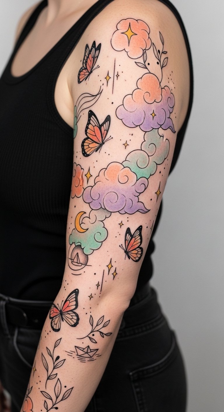 Picture yourself adorned with playful motifs like fluttering butterflies, swirling clouds, or dancing stars. These dreamlike elements spark creativity and invite a sense of wonder, allowing you to express your free spirit.