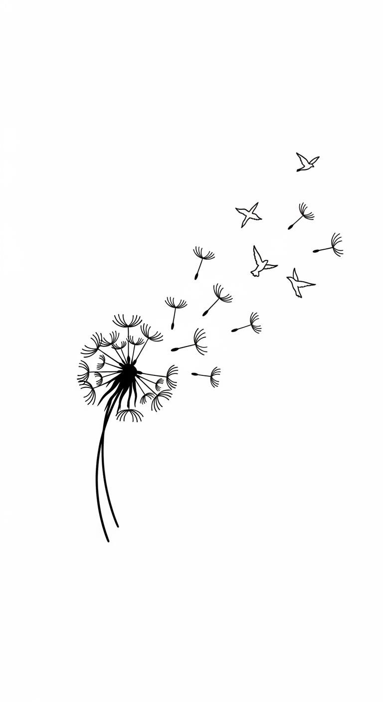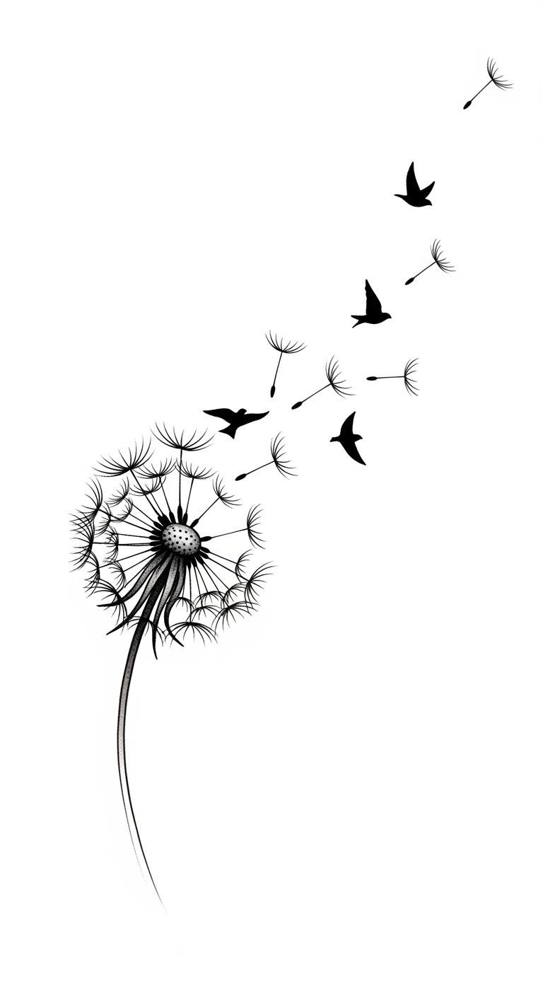 With delicate minimalist linework, these designs capture the essence of freedom and transformation. The subtle symbolism of dandelions releasing their seeds, morphing into birds, speaks to resilience and the beauty of pursuing dreams, inviting you to embrace your own journey.