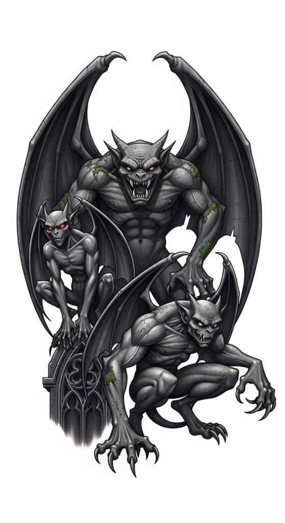 Cryptic letters whisper secrets of individuality, but when it comes to Gothic tattoo motifs, gargoyles stand as formidable guardians of the macabre. These creatures embody gargoyle symbolism, warding off evil while showcasing their architectural significance in towering cathedrals. With intricate designs, you can celebrate their fierce beauty, reminding you of strength and protection in a world shrouded in darkness. Embrace the allure! The design blends protective symbolism and brooding emotion—stoic vigilance, defiance, and a solemn comfort—best placed along the forearm for a narrative sleeve piece or centered on the upper back between the shoulders to evoke the sense of a guardian watching over you; fine-line script integrated into the wings can personalize the meaning while maintaining gothic aesthetics and long-term readability.