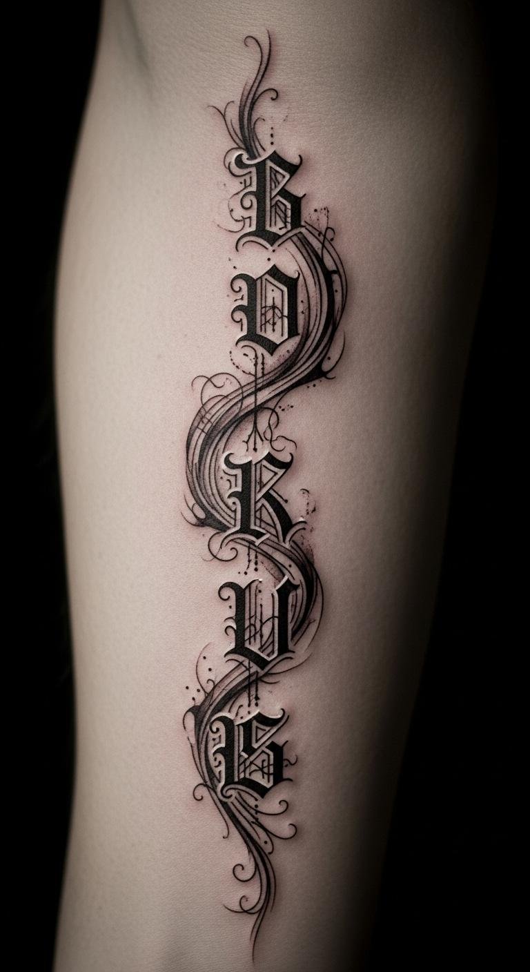 Mystique surrounds the allure of cryptic letters, inviting a sense of intrigue and personal expression in Gothic tattoos. These mysterious scripts serve as personal symbols, whispering secrets only you can reveal. Each curve and line captures your story, blending darkness with elegance.