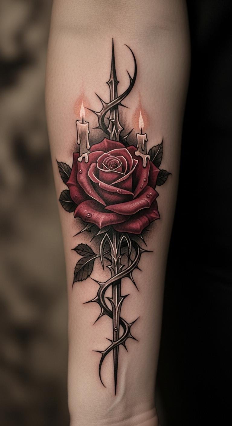 Each thorn tells a story of resilience, reminding you that true allure often comes wrapped in struggle. Let your ink reflect the exquisite duality of existence.
