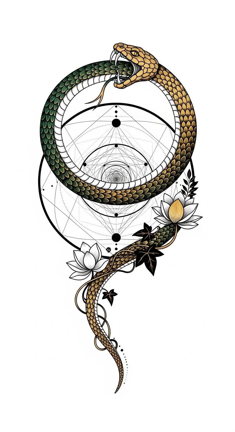There’s something enchanting about the Ouroboros, the ancient symbol of a serpent or dragon devouring its own tail. This tattoo embodies the eternal return, reminding you of life’s cyclical existence. As the serpent consumes itself, you’re inspired to embrace transformation and renewal. With each inked curve, you celebrate the beautiful dance of creation and destruction, a proof of your freedom and resilience.