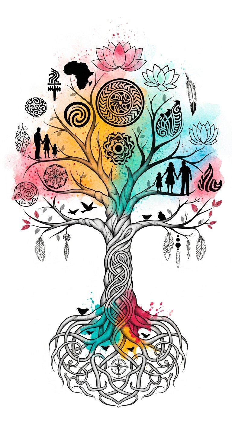 This design embodies heritage symbolism, celebrating your roots and the journey that shaped you. Each branch reflects unique experiences and connections, making it a vibrant identity expression.