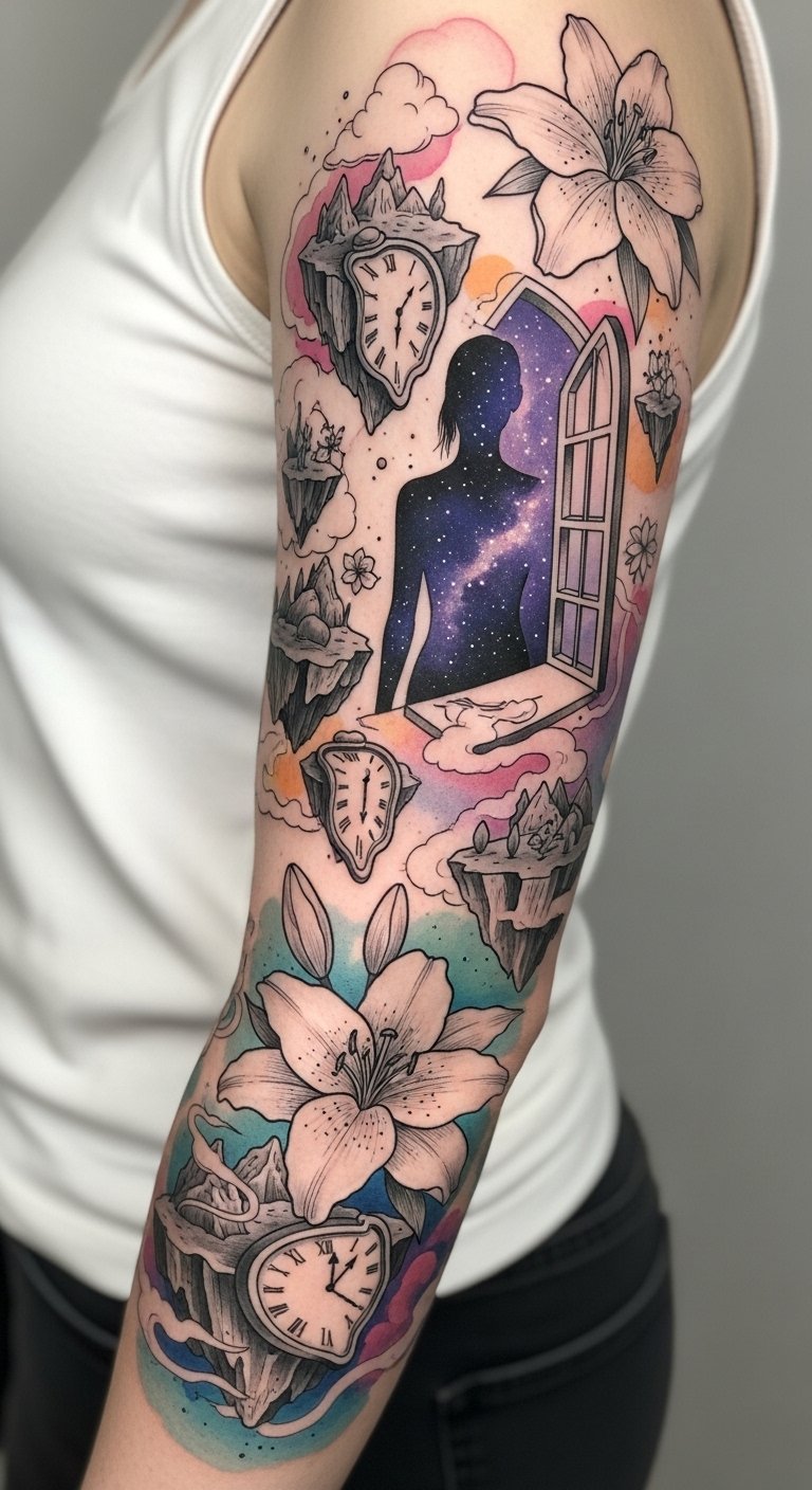 Moving from the delicate intricacies of fine-line tattoos, surrealist imagery opens up a world where imagination knows no bounds.