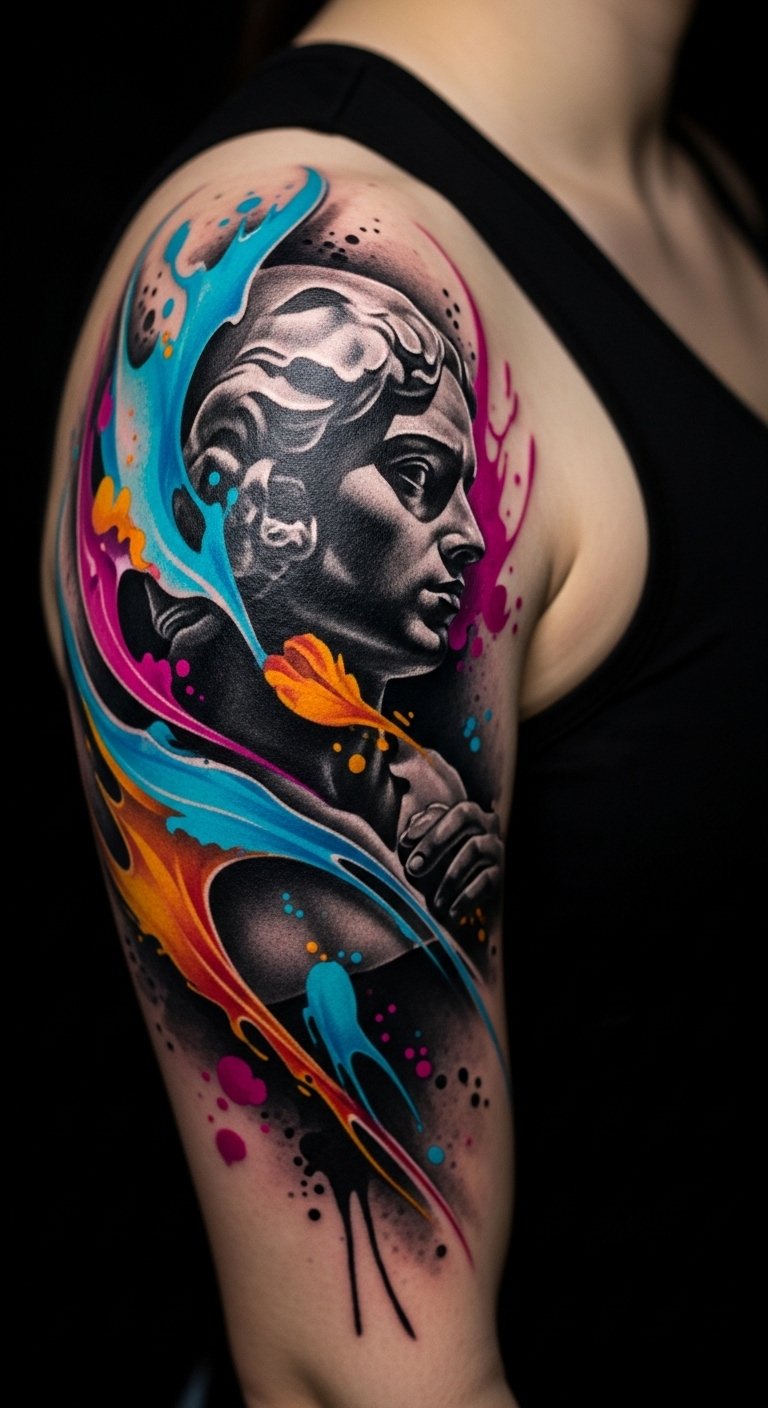 Each hue carries unique color symbolism, reflecting your passions and desires. From radiant florals to electric abstracts, these tattoos invite you to express your true self, celebrating freedom through striking, colorful artistry that captivates every gaze.