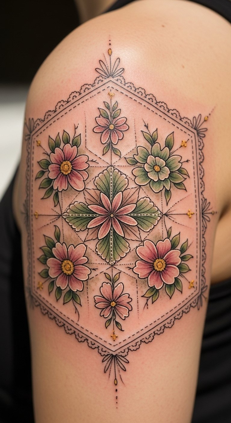 Grandmother’s Flower Garden Block Tattoo