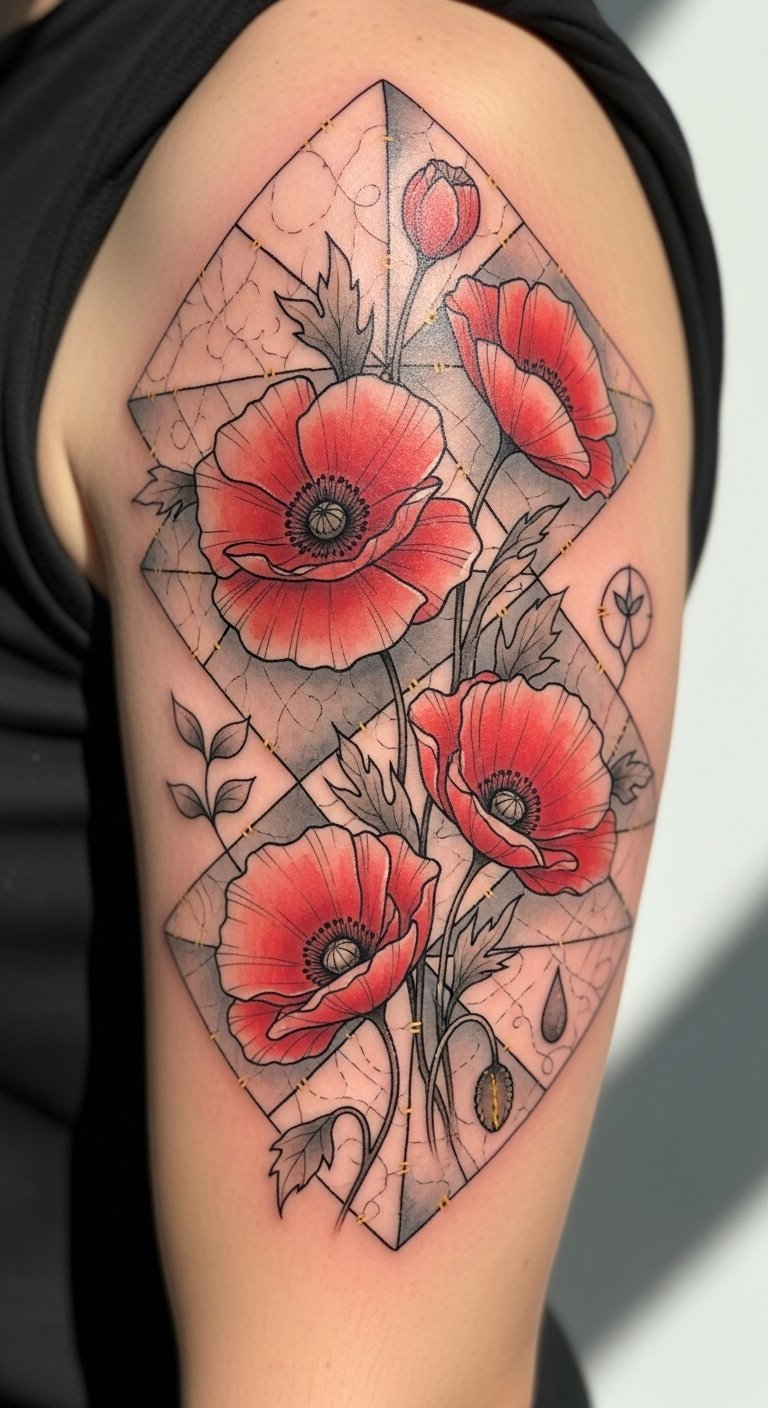 Healing Poppy Flower Quilt Tattoo