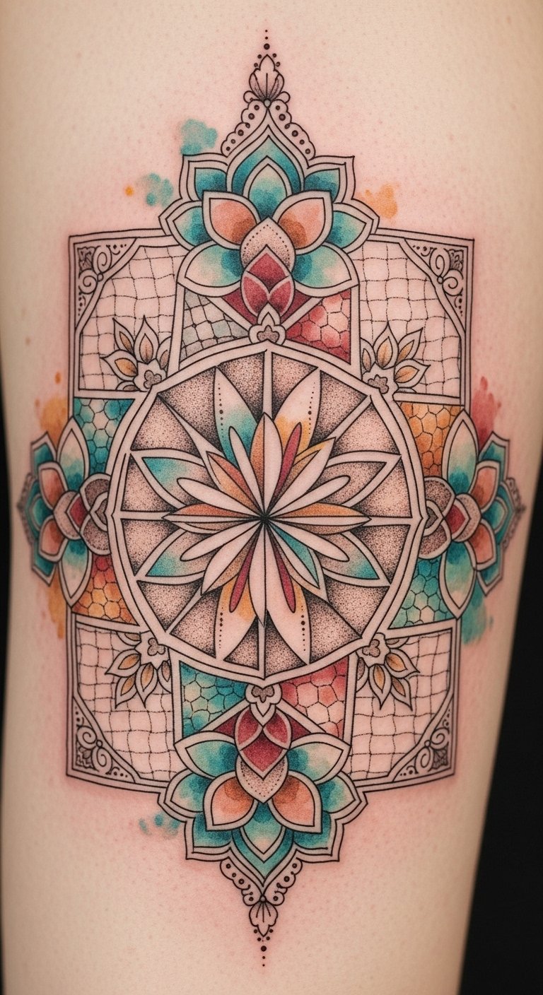 Mandala-Inspired Quilt Tattoo
