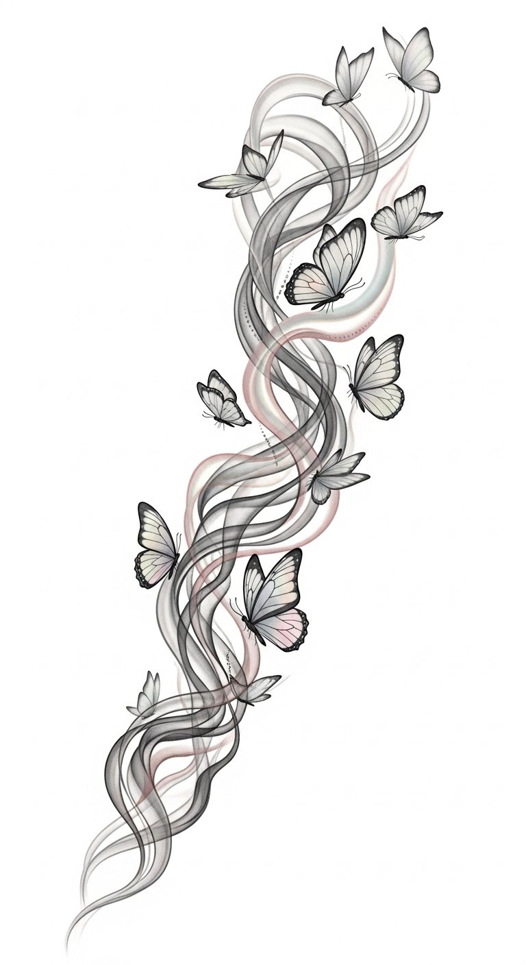 Ethereal smoke entwined with butterfly motifs offers an enchanting fusion, where the delicate grace of butterflies contrasts beautifully with the fluidity of smoke. These ethereal designs symbolize transformation and freedom, capturing the essence of your spirit. Incorporating butterfly symbolism into your tattoo not only enhances visual appeal but also serves as a reminder of your journey, making each piece truly unique. The design evokes transition and uplift—softly melancholic yet hopeful—best placed where movement and visibility enhance meaning: along the forearm to trail with gestures, across the shoulder blade to unfurl with the body, or sweeping the ribcage for a private, intimate emblem of change.