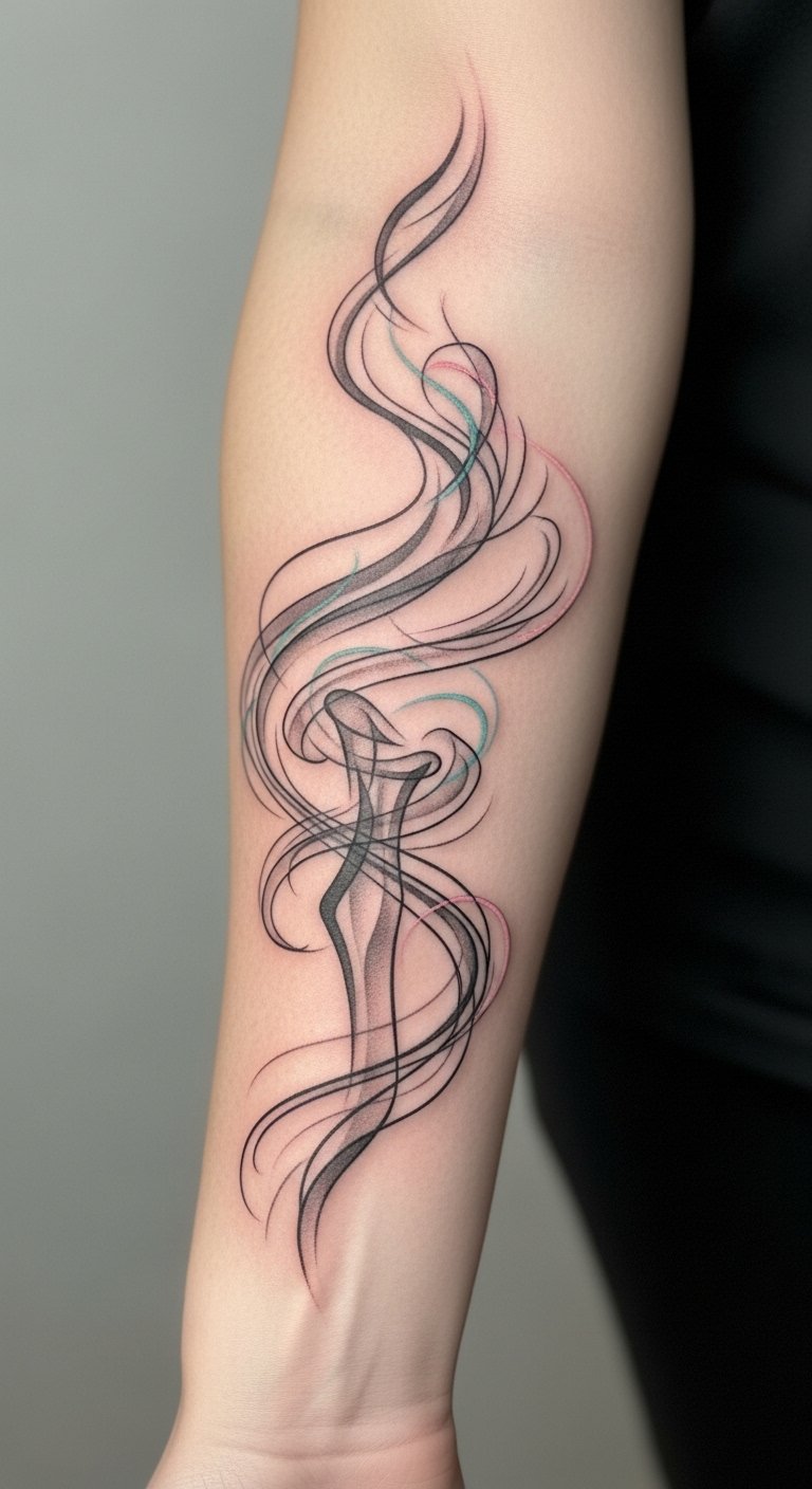 Emotionally it reads as contemplative and liberating. Ideal placement is along the inner forearm or wrapping the wrist, following natural contours so the smoke appears to drift with the body’s motion.