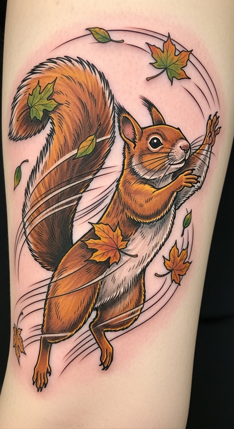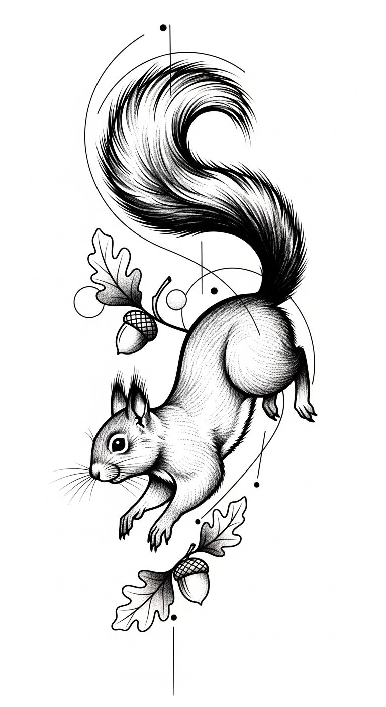 These tattoos can reflect abstract squirrel symbolism, representing curiosity and agility.