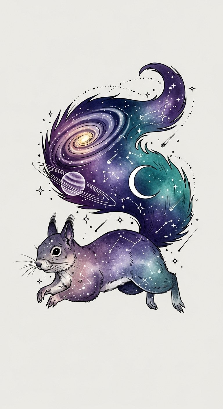 Imagine a celestial squirrel, playfully traversing swirling galaxies and shimmering stars. Each detail—like twinkling constellations or a vibrant moon—adds a sense of freedom and exploration, inviting you to embrace the magic of the universe within your own skin.