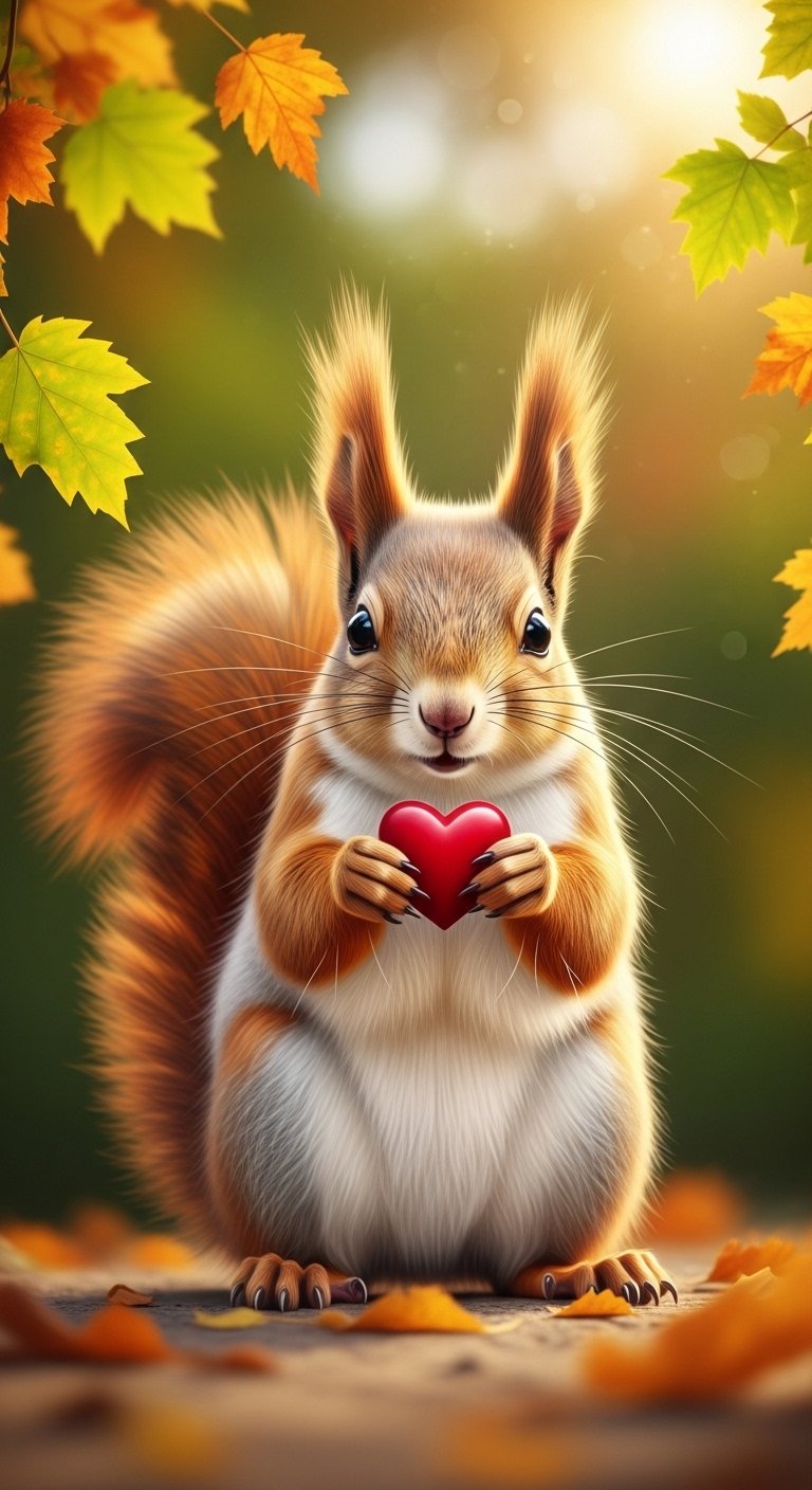 This design pairs the industrious symbolism of a squirrel with tender romantic imagery, conveying perseverance in love and a playful, warm emotional tone; the vivid colors and fine-line details emphasize personality and movement, making it suited for placements like the forearm, shoulder blade, or calf where the tattoo can be shown off or easily covered—ideal for someone who wants a joyful, spirited emblem of affection that also reflects dedication and zest for life.