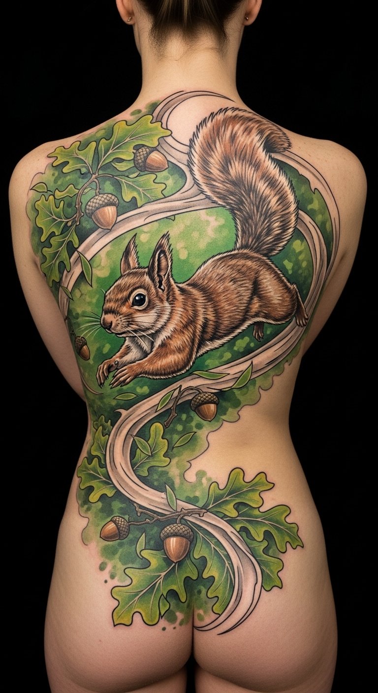 If you’re looking to make a bold statement with your body art, a large back piece featuring a squirrel can be an eye-catching choice.