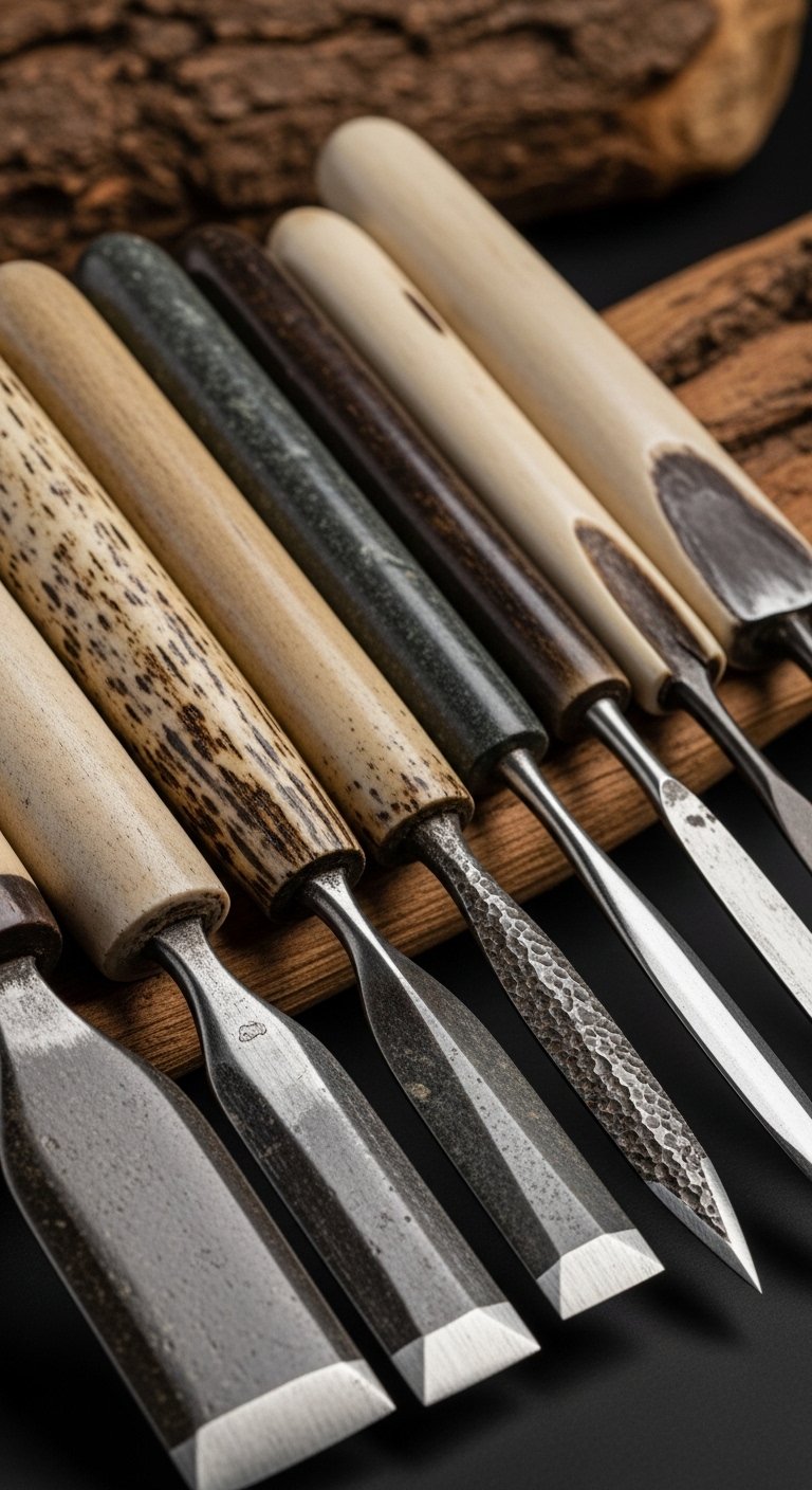 Symbolically the chisels represent lineage, craft, and the transmission of knowledge—emotionally it conveys reverence, resilience, and connection to ancestors.