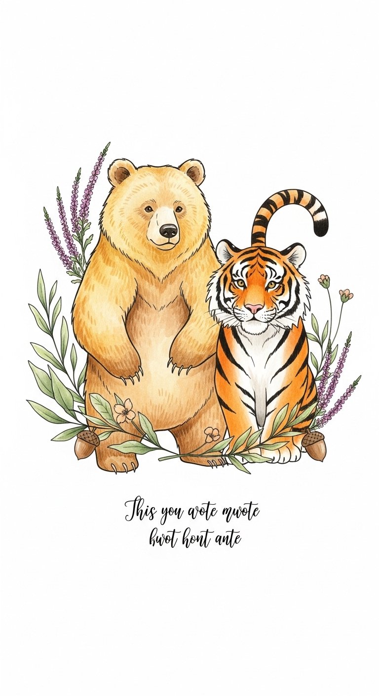 This design symbolizes companionship, courage, and boundless enthusiasm; the watercolor tones evoke nostalgia and warmth while the fine lines preserve clarity over time.